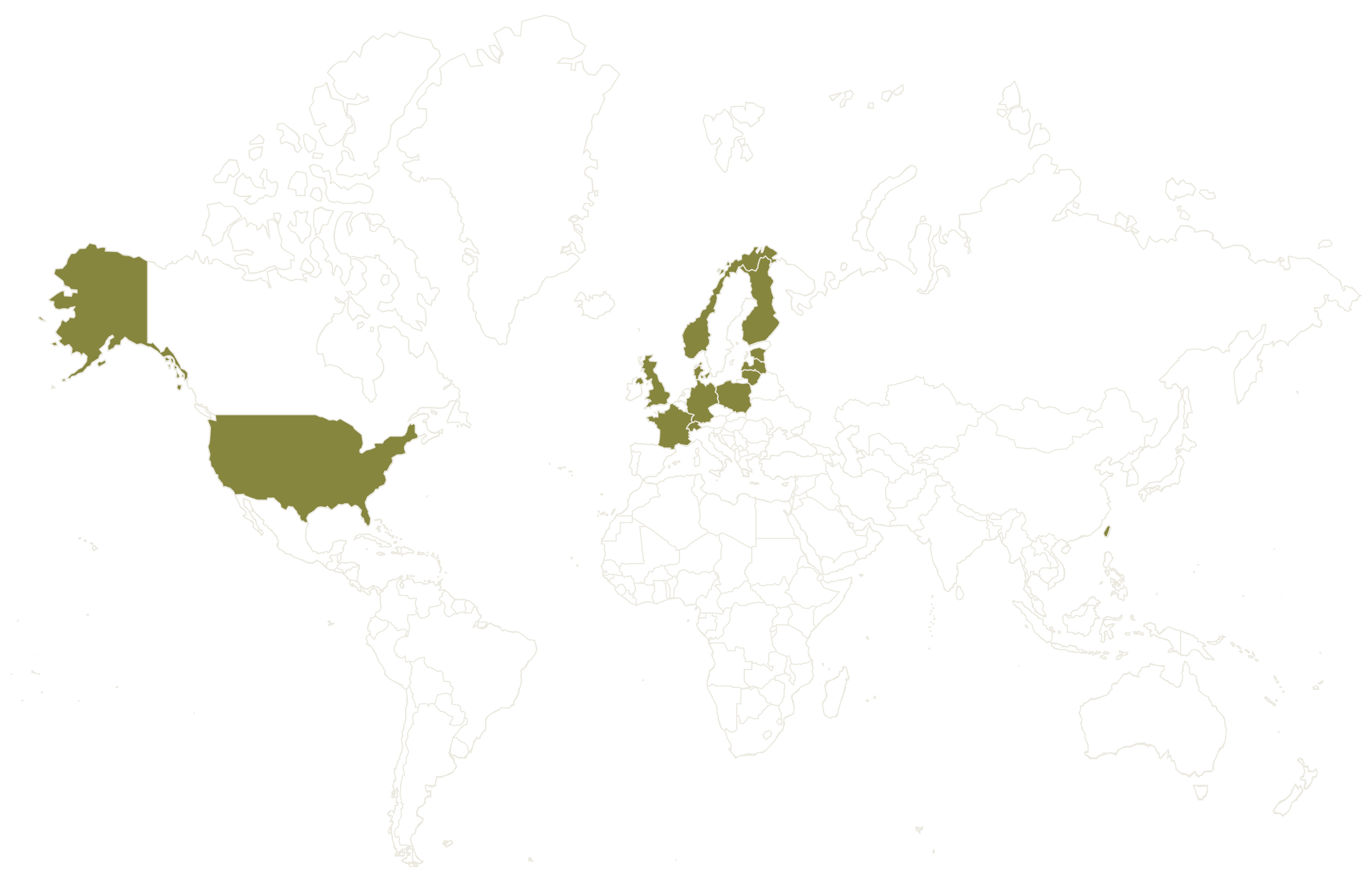 низку країн, від Данії, Франції, Польщі, Німеччини, Нідерландів, Естонії, Великобританії, Фінляндії, Норвегії, Швеції, Литви, до Тайваню та США